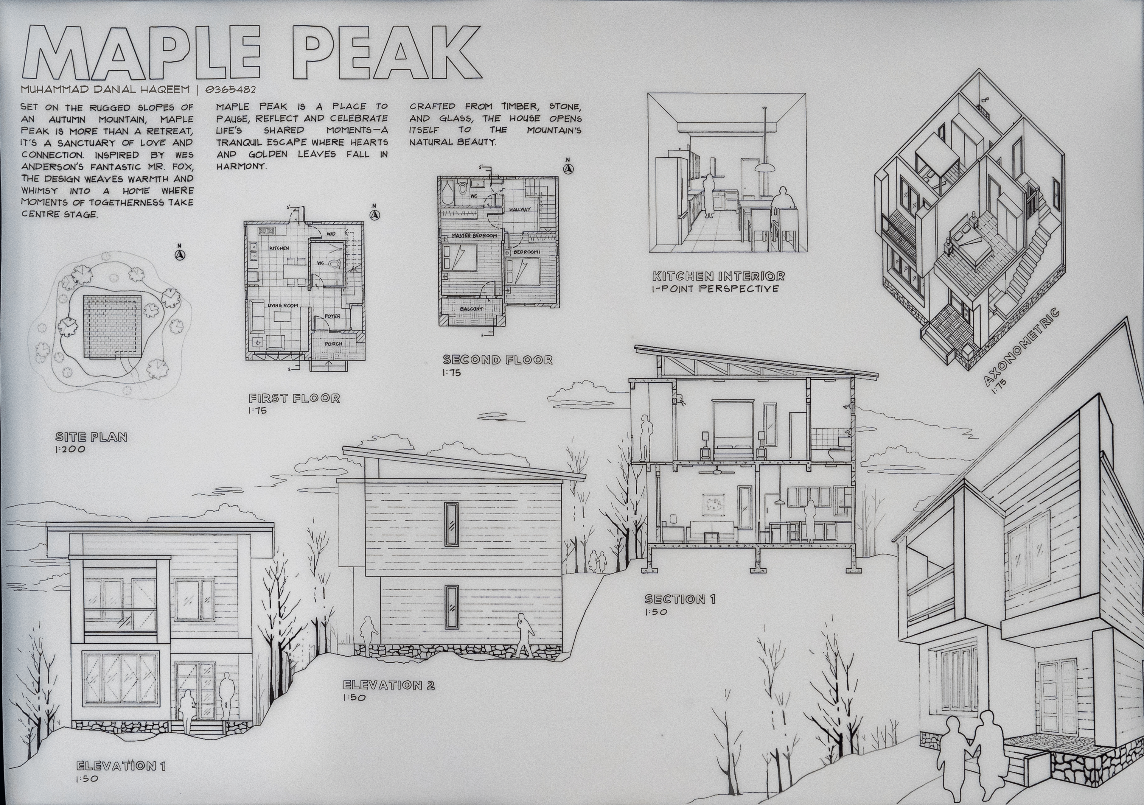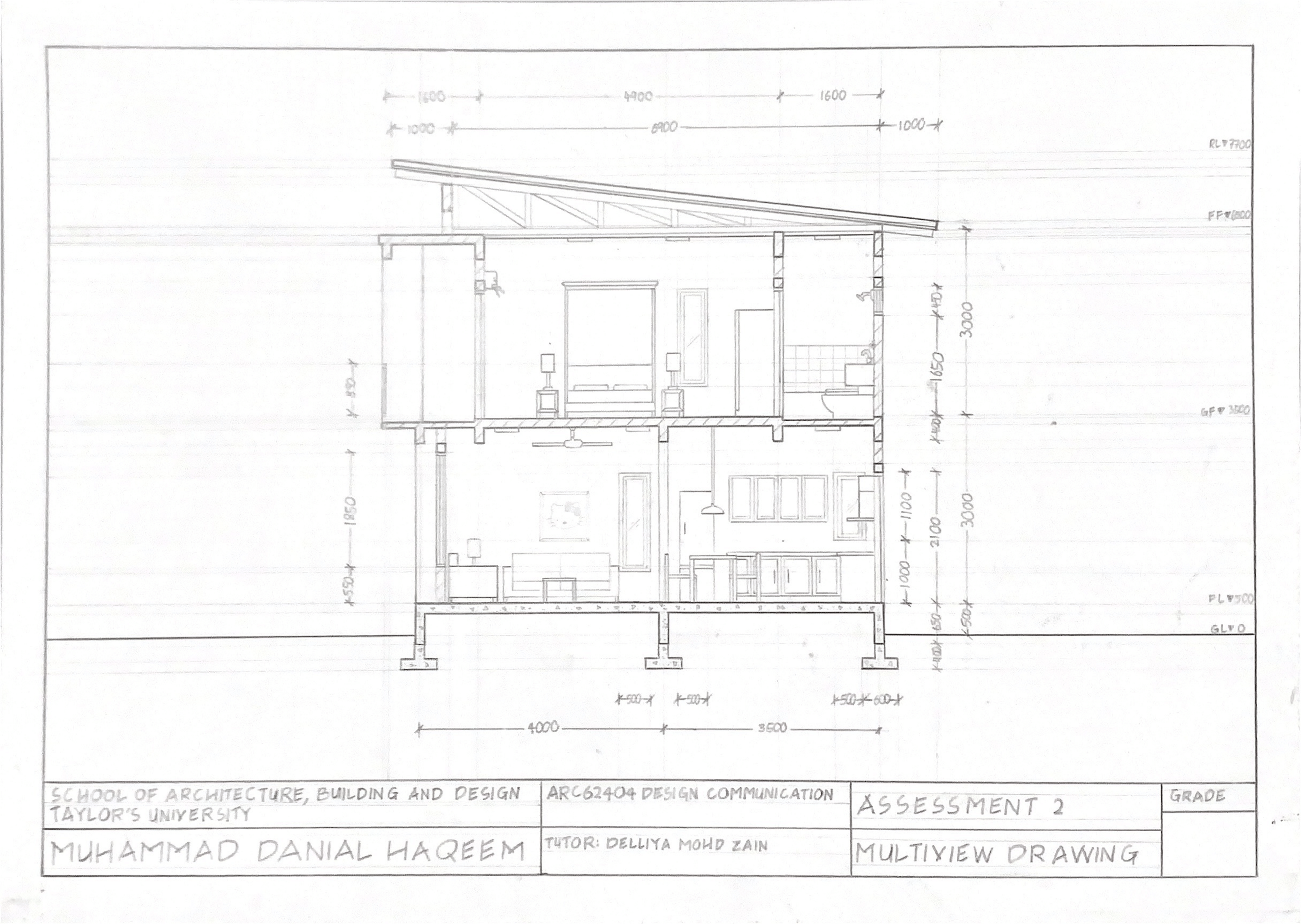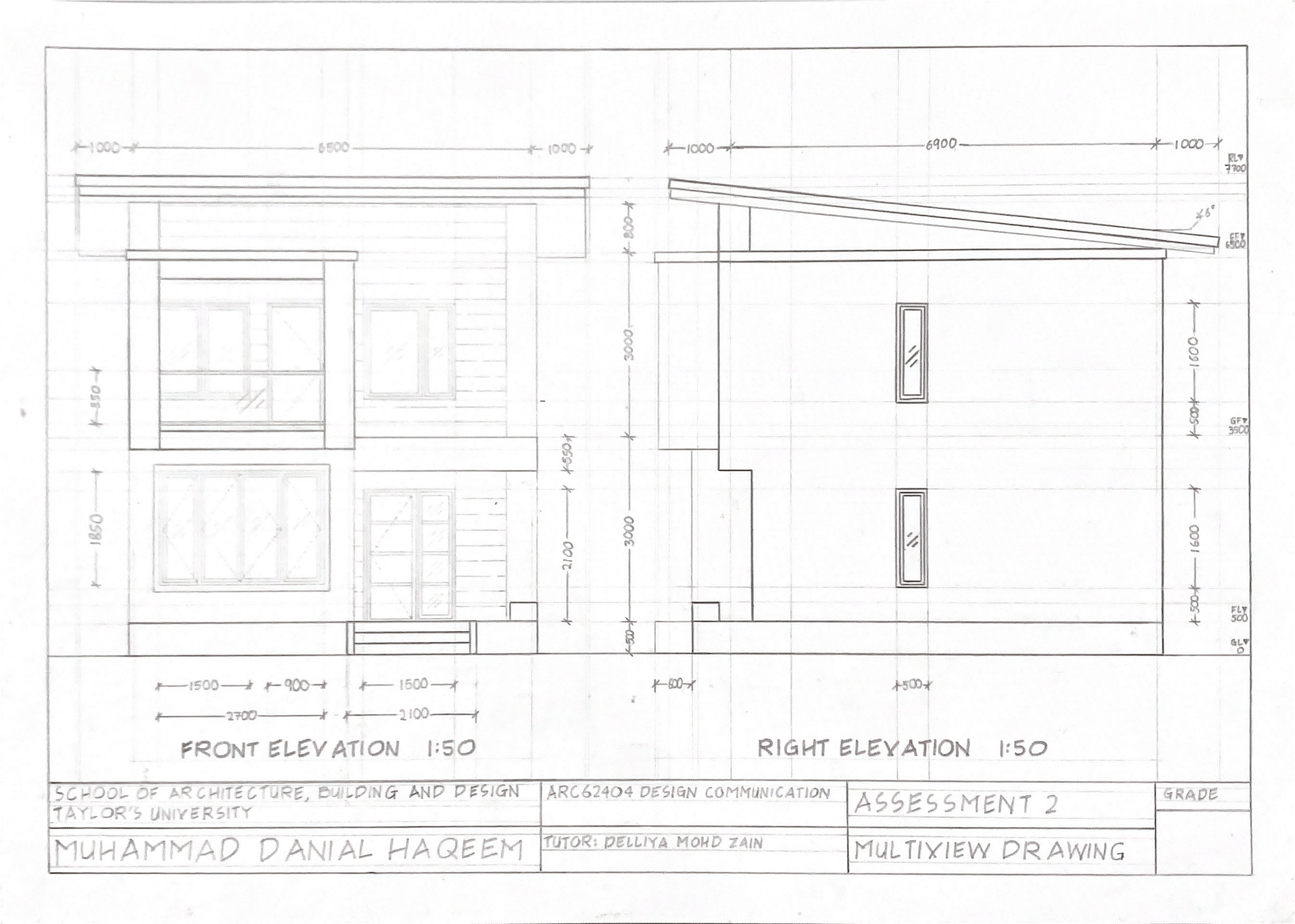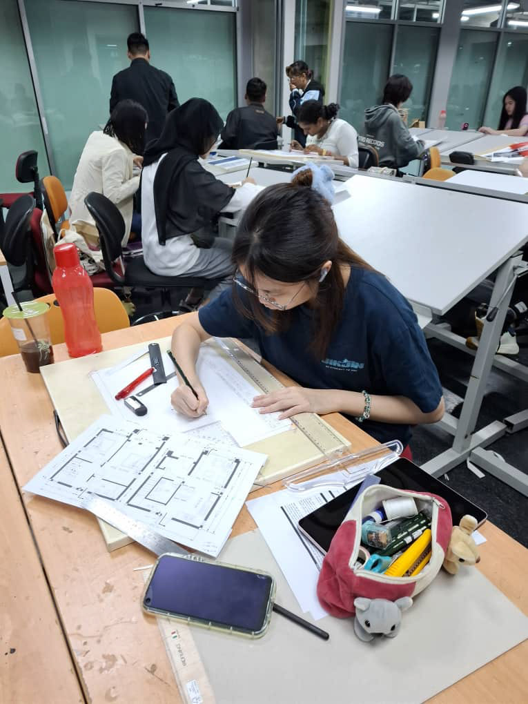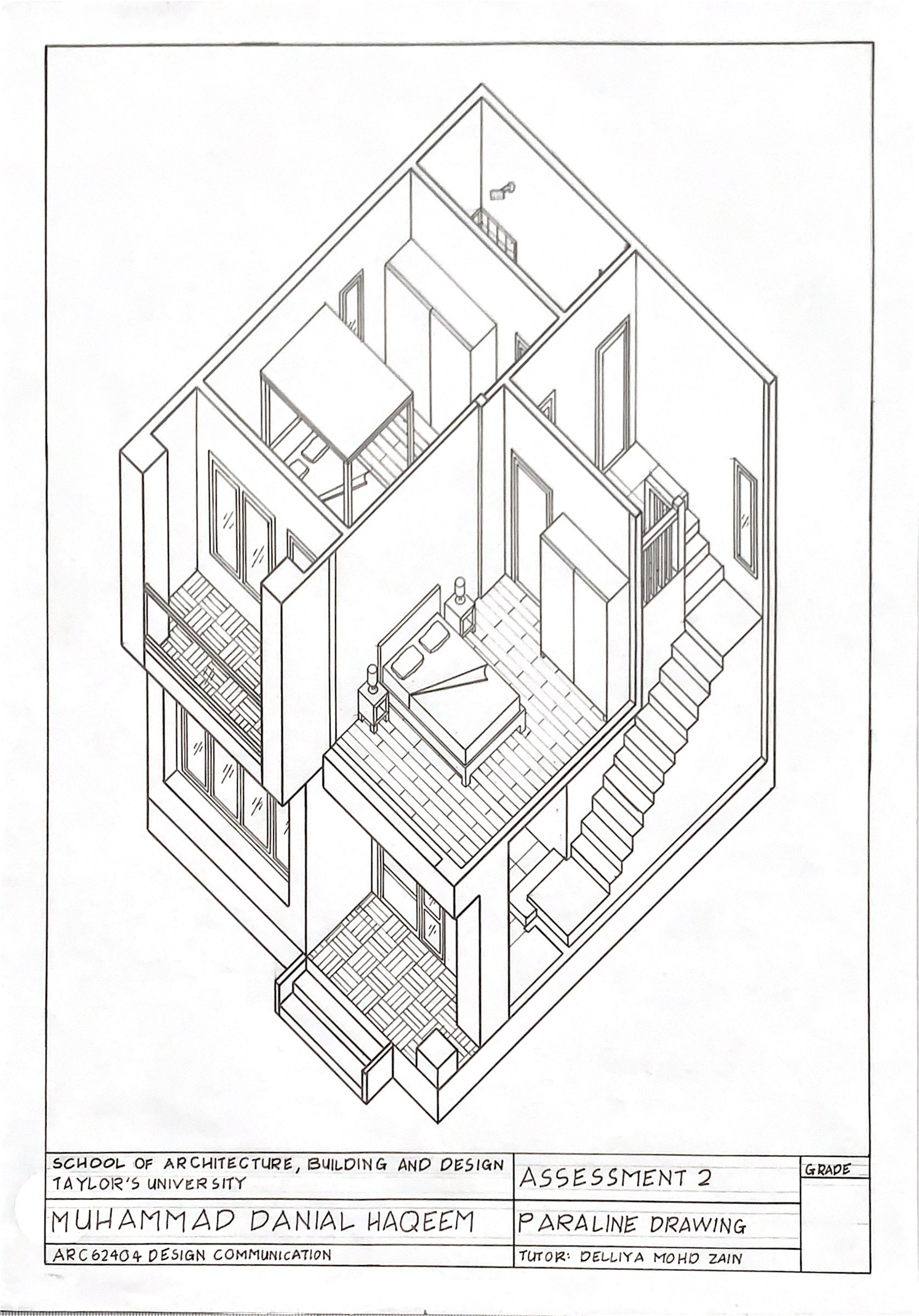 While I was familiar with orthographic drawings, paraline and perspective drawings were entirely new to me. I tackled this learning curve by breaking tasks into smaller steps and seeking feedback from Ms Dee, which helped me refine my work. These skills marked a turning point in my ability to communicate architectural ideas effectively.